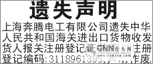 海关进出口收发货人报关注册登记证丢失