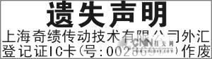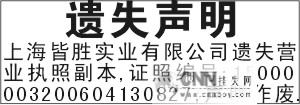 营业执照丢失声明 五行字
