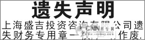 财务章遗失声明 五行字