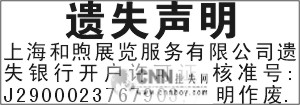 银行开户许可证遗失声明 五行字