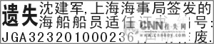 船员合格证遗失声明 四行字