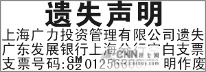 空白支票遗失声明 五行字