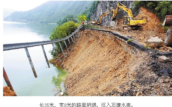 8月28日凌晨1点20分左右,云和县境内53省道丽浦线42+500KM处沿库区公路路基突然大面积坍塌,长35米、宽8米的路面坍塌后,沉入石塘水库。