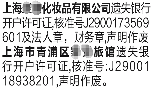 以下是银行开户许可证及公章遗失刊登新闻晨报格式: